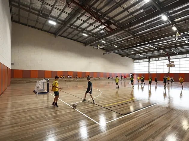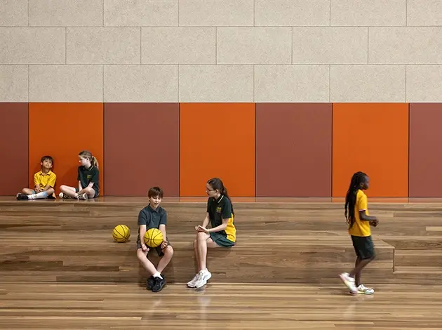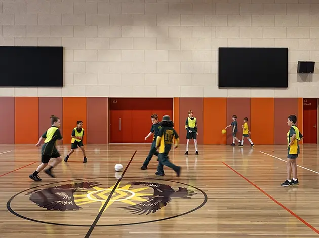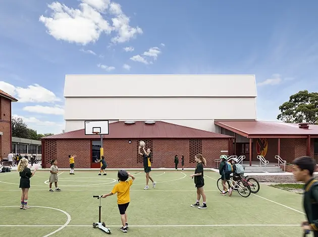 The Footscray West Primary School Upgrade delivers a dynamic, multi-purpose facility that brings together sport, learning and community connection. At its core is a competition-grade multipurpose court designed to support high-intensity use while seamlessly accommodating assemblies, events and local engagement. Carefully integrated acoustic treatments, sports lighting and a timber sprung floor system create a high-performance environment that complements, rather than disrupts, adjacent learning spaces. Framed by landscaped gathering zones and sheltered verandas, the facility fosters movement, interaction and a strong sense of belonging—supporting both the daily rhythm of the school and its broader community role.